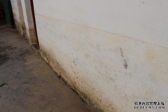 (村委会办公楼白墙上的水渍线)